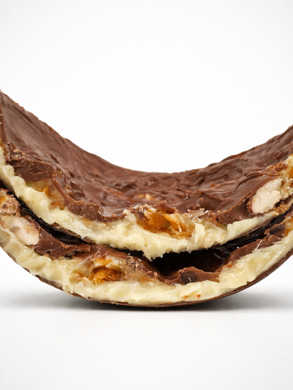 Uma casca delicada de chocolate de leite envolve camadas que despertam lentamente o paladar: ganache fresca de lima e limão, um gel intenso de limão e um praliné de amêndoa com feuilletine que traz textura e profundidade.